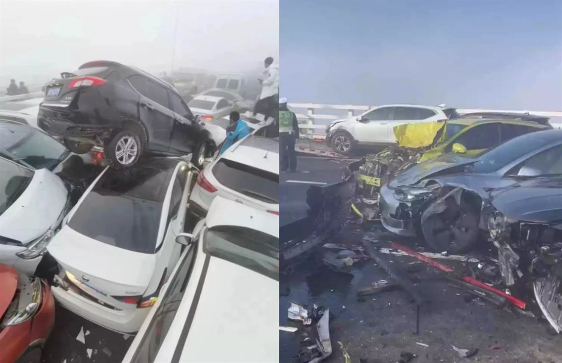 河南鄭新大橋今(28)日上午7時許突發大霧,發生約200輛車追撞事故,從現場釋出的畫面可以發現,車輛在橋上撞成一團,甚至「車疊車」。事發後,車禍現場的行車紀錄儀畫面曝光,事發路段有司機揮手示警,提示後面車輛。官方28日中午通報,事故已造成1人死亡。
