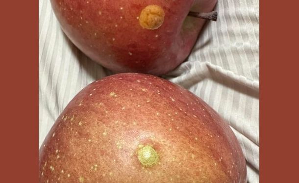 「很好奇這是什麼神秘印記?」原PO在臉書社團「Costco好市多 商品經驗老實說」發文表示,每一顆蘋果上都有類似的圓點,因為該部位和周遭顏色不同,她食用前有挖掉,果肉吃起來沒有什麼問題。