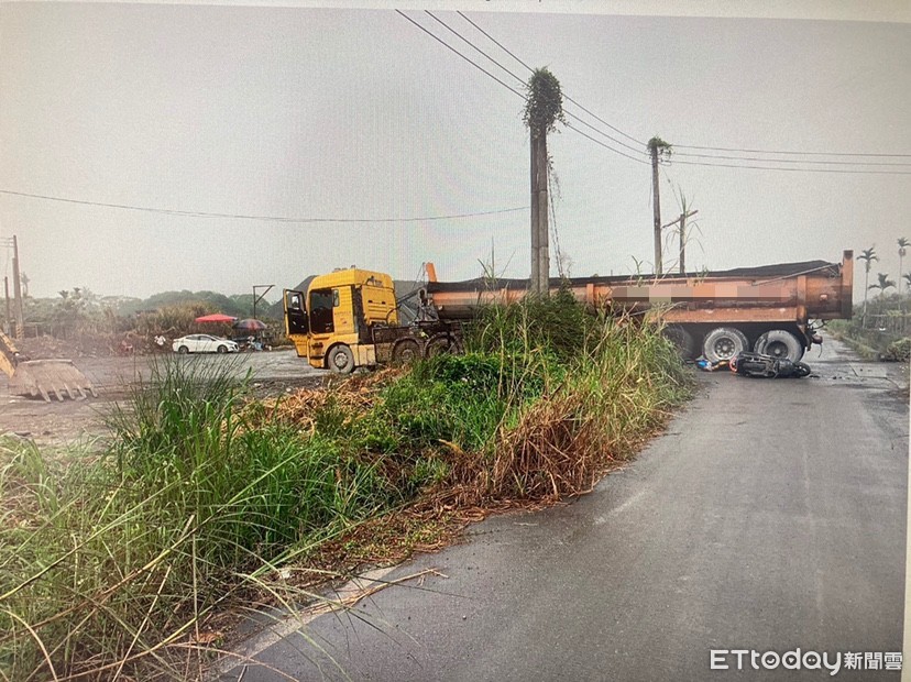 ▲▼砂石車與機車車禍。(圖/記者陳崑福翻攝)