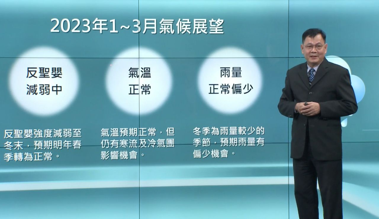氣象局預報中心主任呂國臣表示,今年春天反聖嬰現象持續,已是連續第三年,從歷史資料來看「連續三年反聖嬰」是二十年一遇,明年春天反聖嬰現象有逐漸減弱的趨勢。