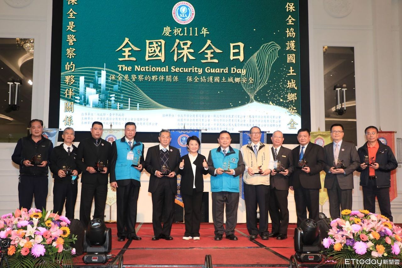 今年全國及台中市保全日慶祝活動今(30)日在台中市烏日區臻愛花園飯店舉辦,台中市長盧秀燕今晚出席活動表示,守護治安不只需要警察,也需要警民合作、公私協力才能做好,感謝保全朋友守護家園。