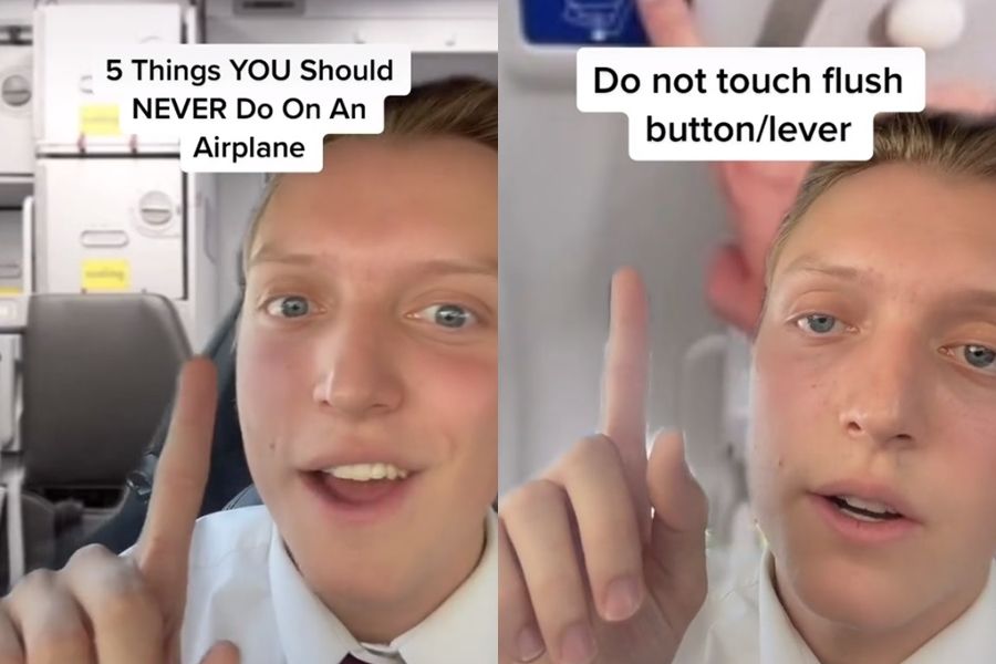 美國一名空服員經常在TikTok分享工作和旅遊大小事,吸引45萬粉絲追蹤,先前曾羅列5項為了衛生起見,絕對不該在飛機上做的事,包括穿短褲、徒手按馬桶沖水鈕等等。近來隨著國際旅遊復甦,他的建議也再度引發關注。