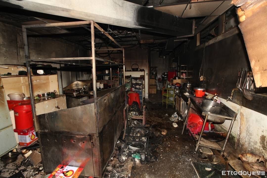 ▲▼花蓮1營業場所因油鍋起火,店員卻嚐試以水撲滅卻增長火勢,險些釀成大災。(圖/花蓮縣消防局提供,下同)