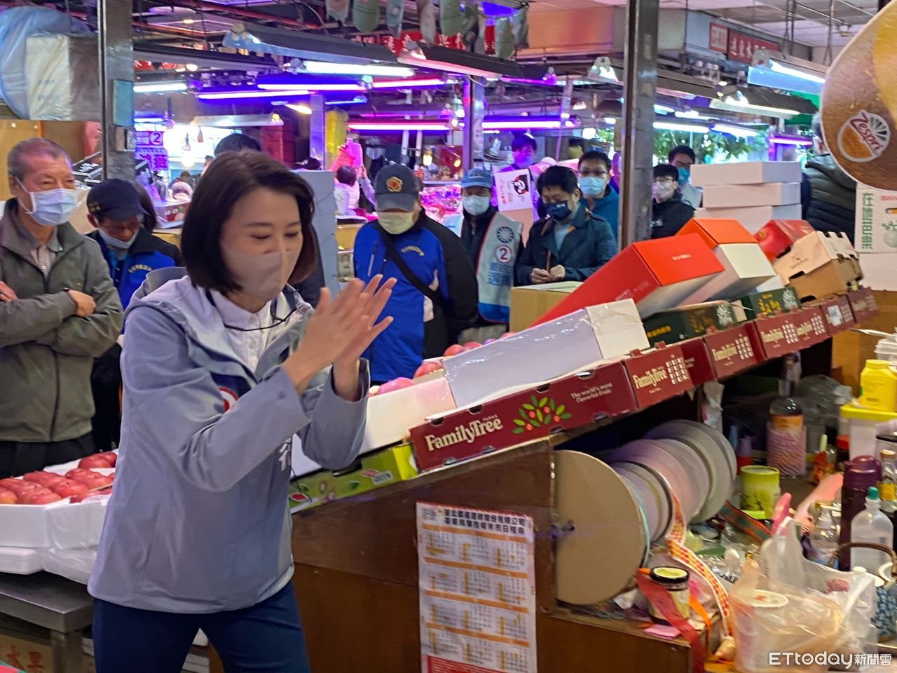 ▲王鴻薇至濱江果菜市場拜票。(圖/記者崔至雲攝)