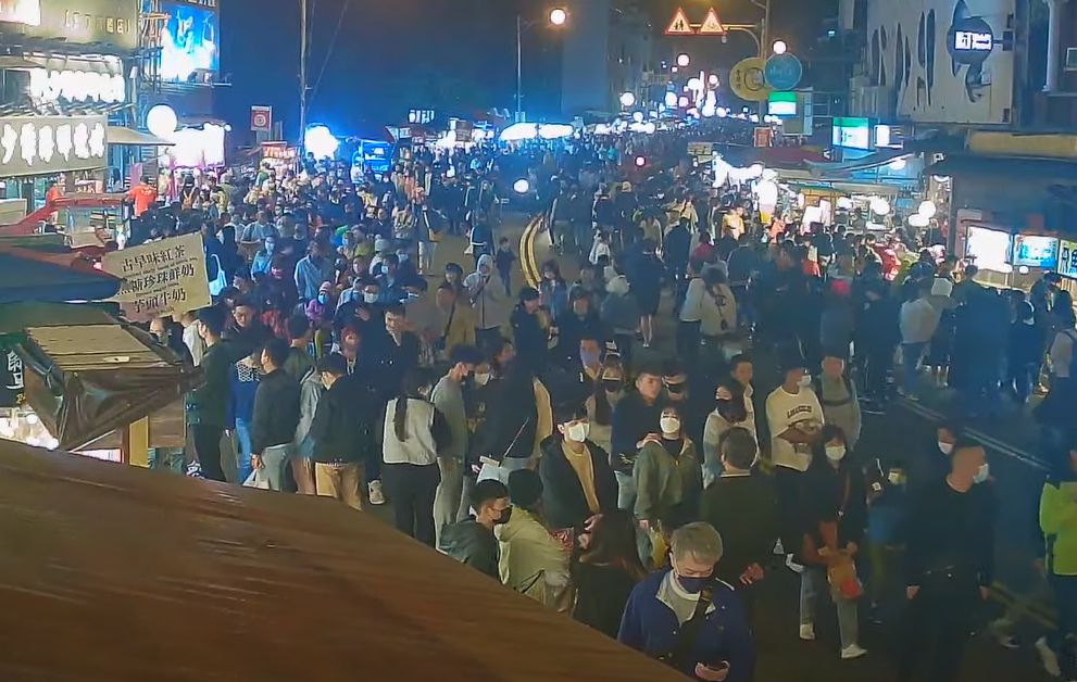而墾丁大街北上的直播影像當中,雖然受到燈光影響,畫面較為模糊,但仍可以看見有許多人邊走邊玩、享受著2022年的最後一天。