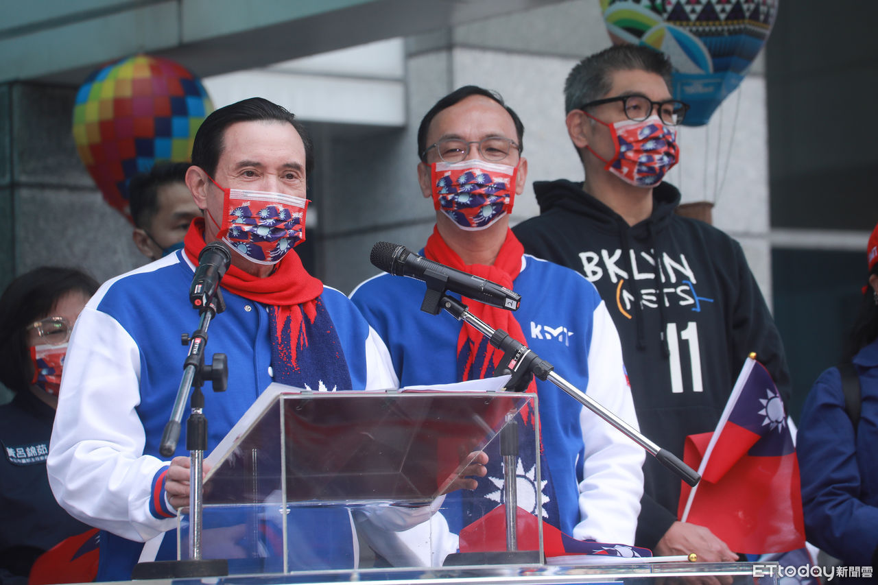 ▲朱立倫、馬英九出席「元旦升旗,早起打拚」112年國民黨中央升旗活動。(圖/記者周宸亘攝)