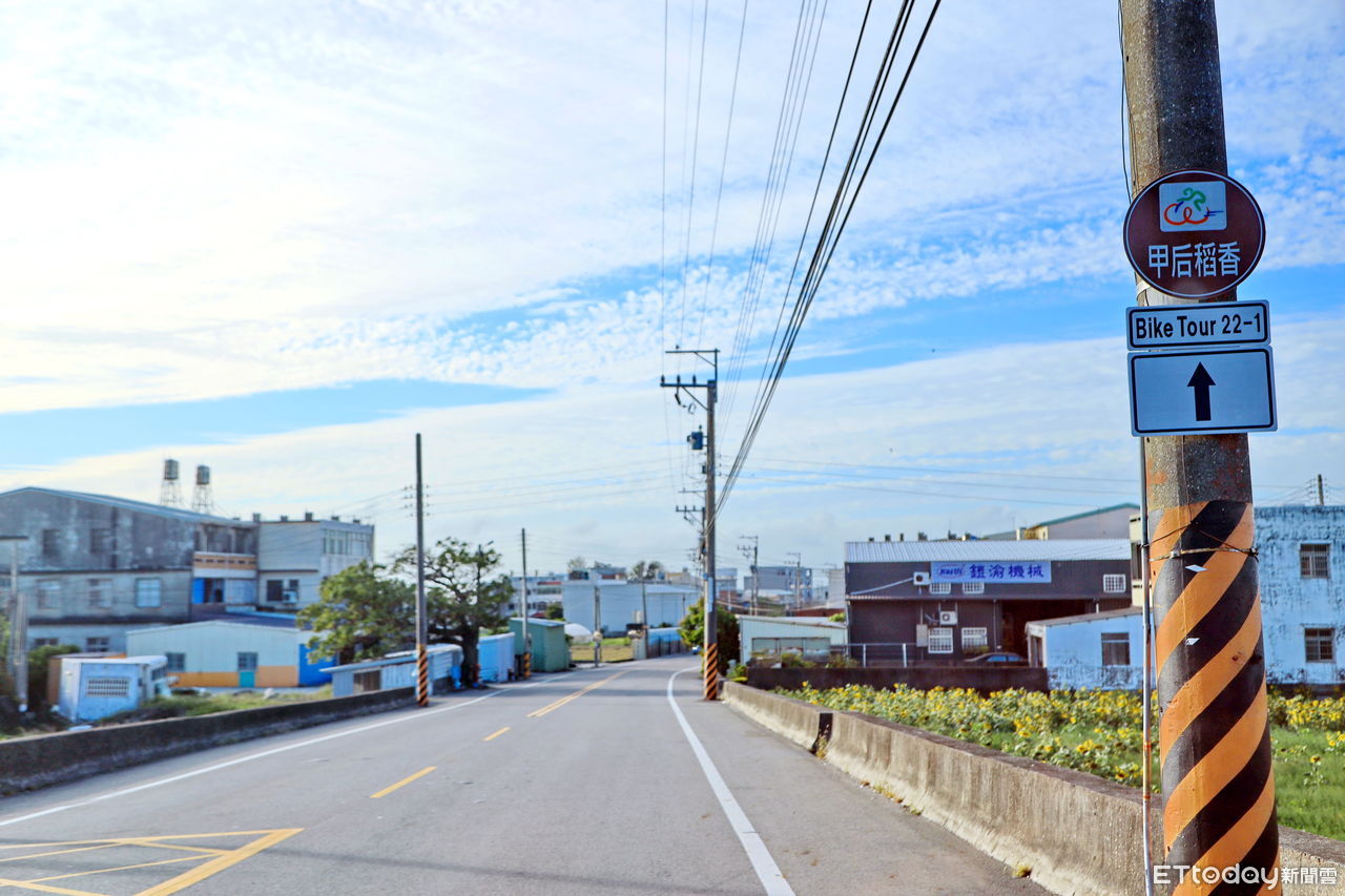 「甲后稻香自行車道」銜接后豐鐵馬道、甲后線自行車道—忘憂谷支線及濱海自行車道等,配合外埔忘憂谷一年四季不同的特殊景色,在自行車道的地坪彩繪忘憂谷在地作物,包括水稻、油菜花、小雛菊、向日葵、波斯菊等花卉,讓遊客了解在地特色;另外在堤頂專用道終點休憩觀景區設置造型廊架,拍照打卡猶如雜誌封面,更增添景點趣味性。