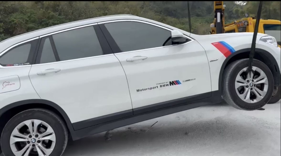 ▲壽山動物園停車場「鋼筋外露」,BMW底盤慘被勾…遊客急求救。(圖/翻攝自記者爆料網)