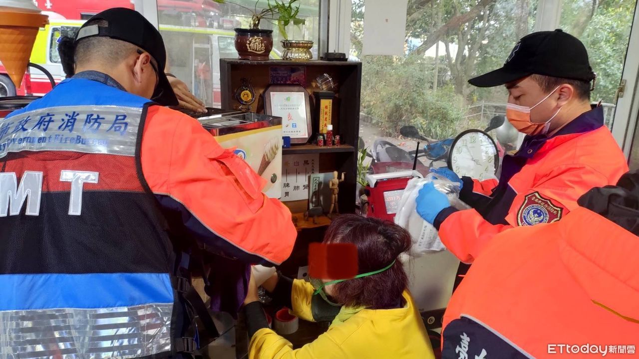 ▲台南市官田區發生女員工被冰淇淋製冰機夾手,消防人員拆解機器搶救脫困送醫。(圖/民眾提供,下同)