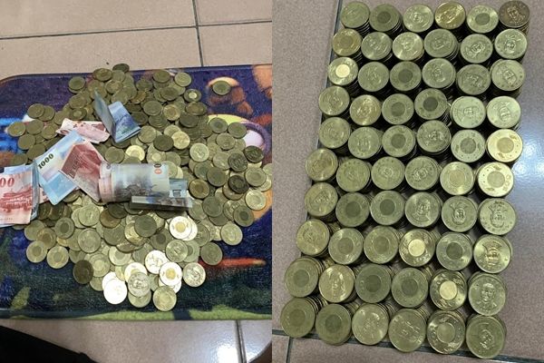 而經過一年的努力,男子2022年12月31日殺豬公,將滿滿的50元硬幣放在地上排列整齊,還有數張千元、500元及100元鈔票,畫面相當壯觀。
