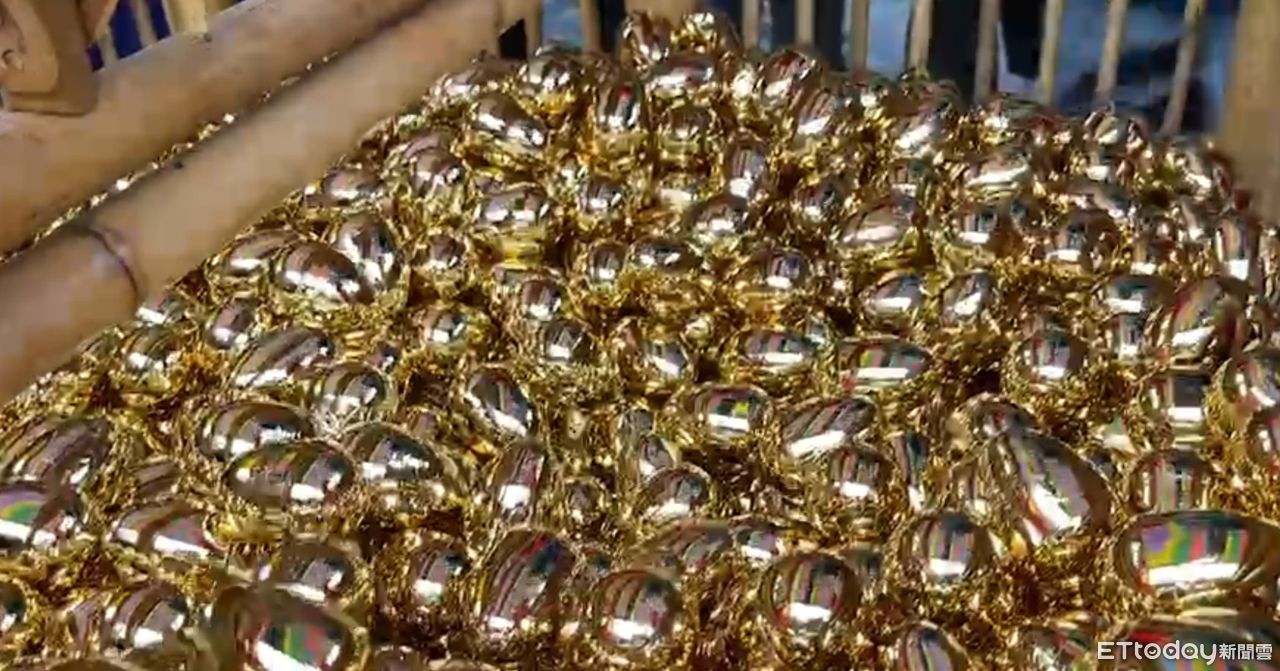 紫南宮1日上午9點開始發放錢母,廟方更是加碼,讓前4,168位民眾能夠拿到「金雞蛋」抽獎。此外,廟方還打造了5只金戒指,透過土地公的金牌打造而成,讓幸運獲得的民眾能夠擁有好運。