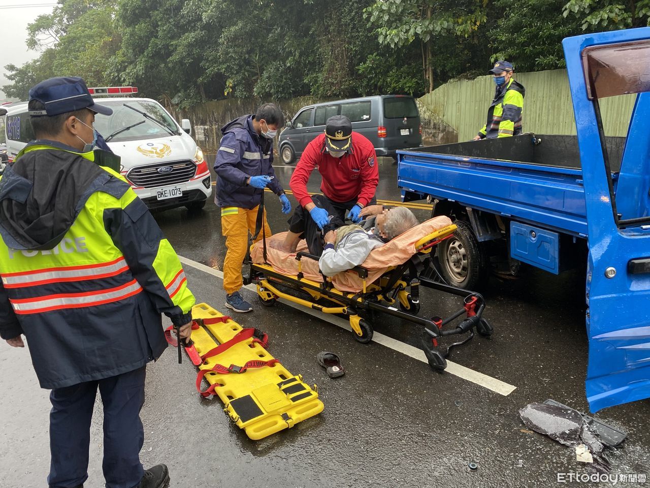 調查指出,44歲林姓小貨車駕駛開車載70歲父親,卻遭前方自小客車相撞,父子2人受困車頭嚴重變形,被夾擊受困經搶救送醫;警方初步了解,自小客車疑因天雨路滑,偏向對向車道,車尾與自小貨車撞擊。