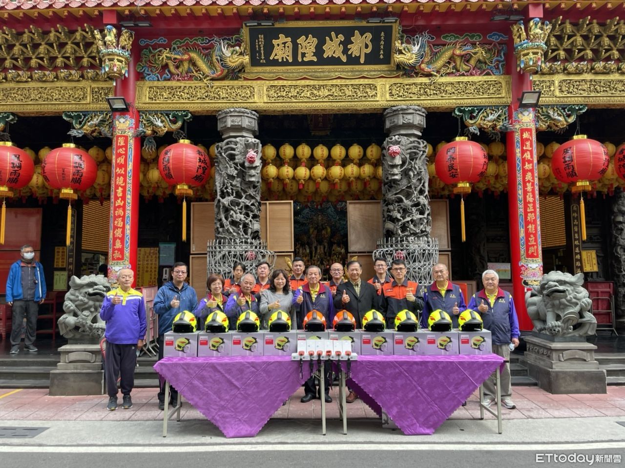 ▲屏東都城隍廟捐贈屏東分隊消防頭盔及個人熱顯像儀。(圖/記者陳崑福翻攝)