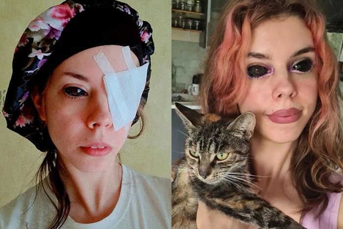 ▲薩多芙絲卡刺青失敗,導致右眼失明只能裝義眼。(圖/翻攝自IG/anoxi_cime,下皆同)