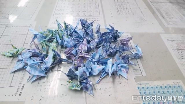 4日游女的同學們用自己的巧手,每個動作細心慢慢摺,摺成滿滿一大袋,用象徵祝福的千紙鶴說:「我們希望她一定可以堅持,度過這個難關。」