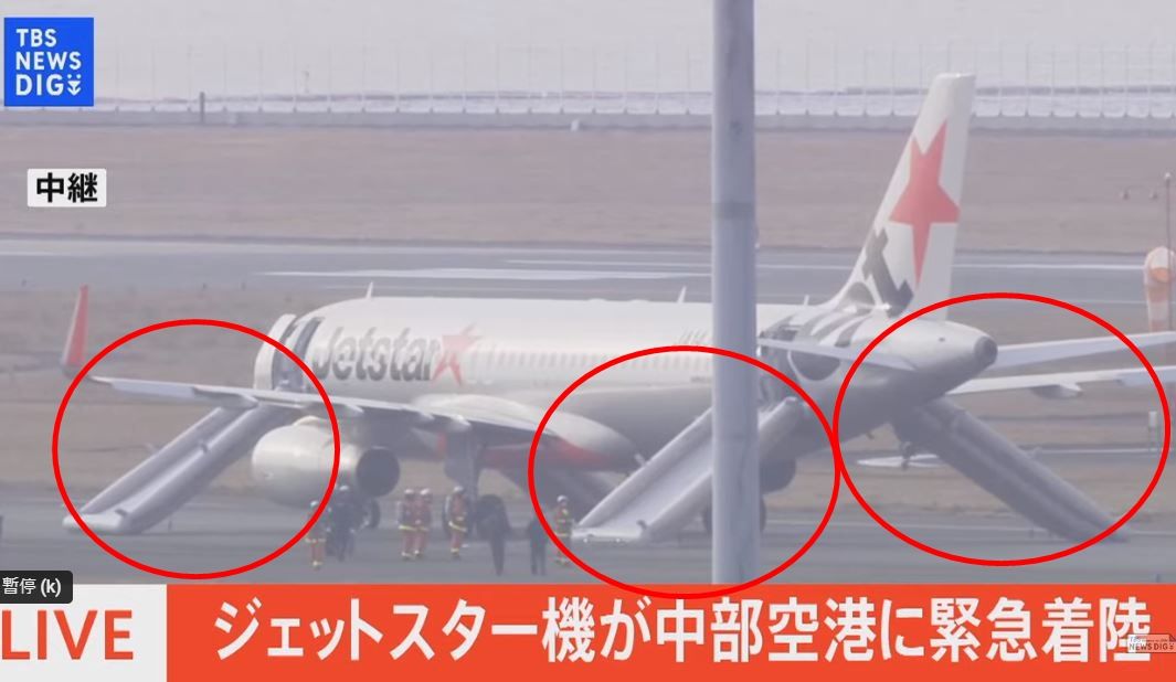 該班機原有149名乘客預定,但實際僅136名乘客搭乘,另有6名機組人員。飛機迫降後隨即在跑道上開啟逃生滑梯疏散乘客與機組人員,有5名乘客受到輕傷。該起事故不但影響到名古屋機場後續航班,該跑道也因迫降暫時封鎖。從日媒所拍攝到的畫面更可以看到,4支飛機滑梯都彈出。