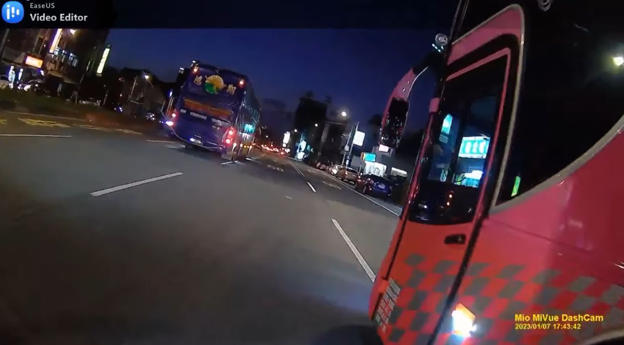 該名騎士在臉書社團「桃園爆報(二)」PO出行車紀錄器表示,他7日晚間5時43分於萬壽路二段直行前往桃園方向時,右側一輛遊覽車不斷從他後方狂按喇叭。