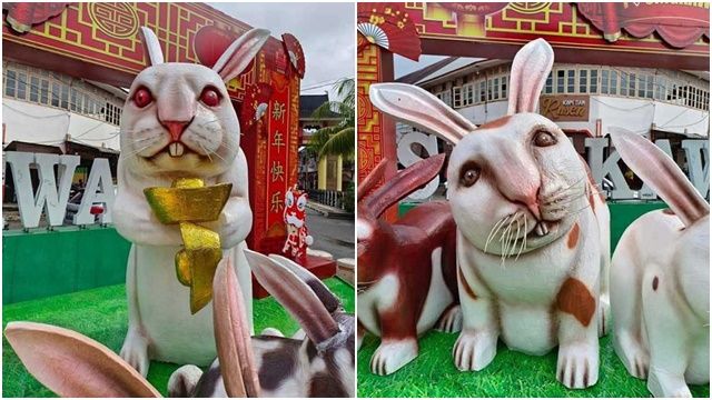 《中國報》報導,巨兔雕像位於山口洋市(Kota Singkawang)咖啡廳Kopitiam Rusen前方廣場,儘管腳下是一片綠油油人工草皮,背後還有大紅色燈籠及春聯,試圖營造喜氣洋洋的氛圍,但由於兔群表情毫無生氣,甚至有些詭譎,因此讓人不寒而慄。