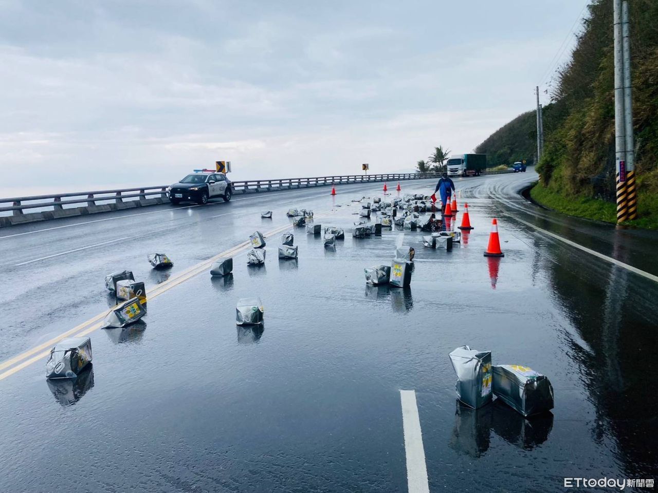 台東縣大武警察分局於9日接獲報案,在大武鄉台9線409公里北上(往台東市)車道,有貨物掉落路面,員警立即到場交通疏導並通報大武工務段人員到場清除路面。