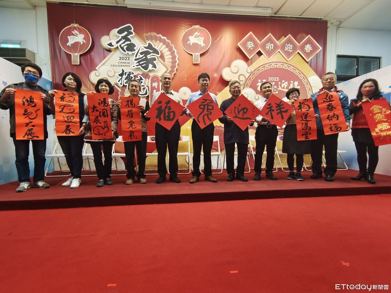 ▲台東市公所一樓大廳舉辦「2023福兔迎祥~癸卯迎春名家揮毫贈春聯」活動。(圖/記者楊漢聲翻攝)