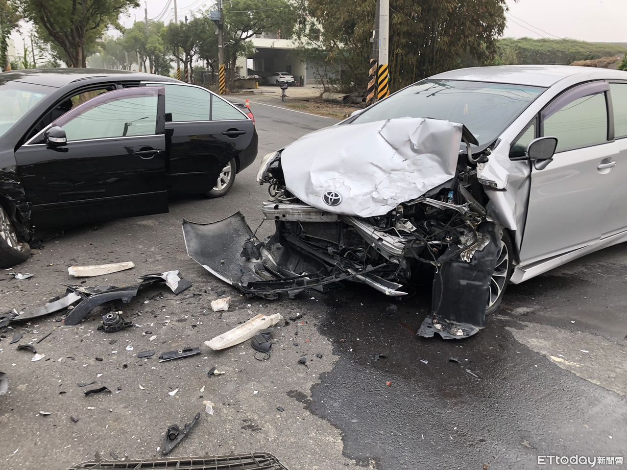 ▲台南市後壁區侯伯往土溝方向約200公尺發生兩部車車禍,消防人員搶救駕駛人脫困,並將2車駕駛人以救護車送醫救治。(圖/民眾提供,下同)