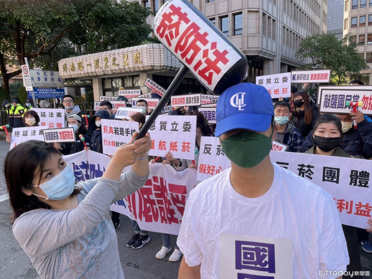陳抗民眾在場外上演行動劇,拿出代表民意的大錘子狠狠敲醒這些立委,讓他們認清國民健康才是最重要的。且根據衛福部統計,青少年吸食電子煙恐已超過5.7萬人,立委豈能延宕修法,導致校園充斥電子煙而無法可管。