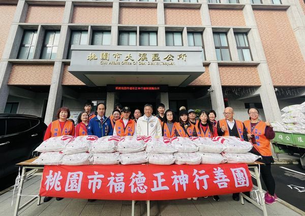 桃園市福德正神行善團10日捐贈白米3,000台斤,送交大溪區公所轉交給大溪區弱勢家戶,區長陳聖義代表接受並致贈感謝狀,感謝桃園市福德正神行善團樂善好施,將善心化作實際行動,於歲末寒冬之際,帶給弱勢家戶滿滿的溫暖。