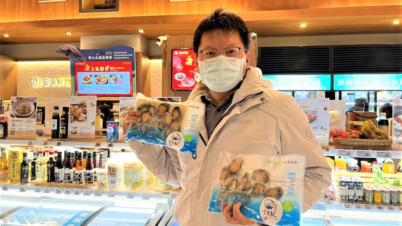 此外,新北市漁業處媒合「安永鮮物」健康超市採購新鮮貢寮鮑,結合日本創新細胞活存冷凍技術(CAS,Cells Alive System)百分百封存貢寮鮑的鮮度及營養,解凍後就像剛採收般新鮮,在安永鮮物各門市據點及安永鮮物線上商城都可買到這份來自東北角的天然海味。