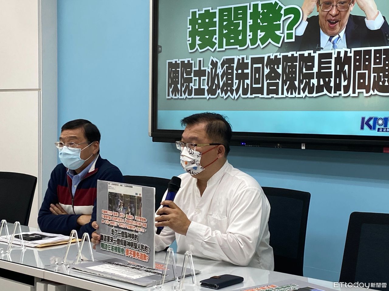 ▲國民黨團召開「接閣揆? 陳院士必須先回答陳院長的問題」記者會。(圖/記者崔至雲攝,下同)