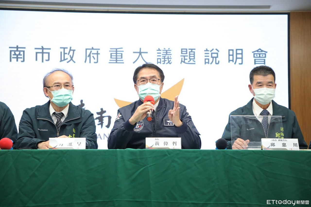 ▲台南市長黃偉哲率秘書長及局處首長,召開記者會說明四大爭議,網友對黃偉哲的作法表示肯定,並說「正面回應比別人亂說來的好」。(圖/記者林悅翻攝,下同)