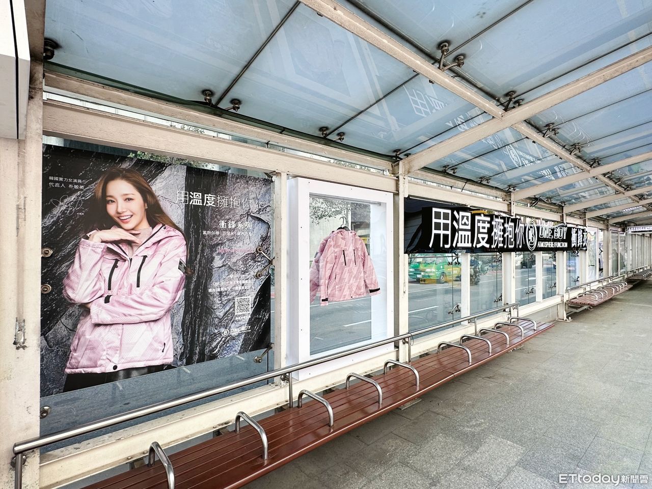 您好,以下是近日台北街頭出現的創意廣告,我們想請教您的看法,麻煩您花30秒協助提供意見。謝謝您。▲北市公車站出現的創意廣告。(圖/ETtoday攝)