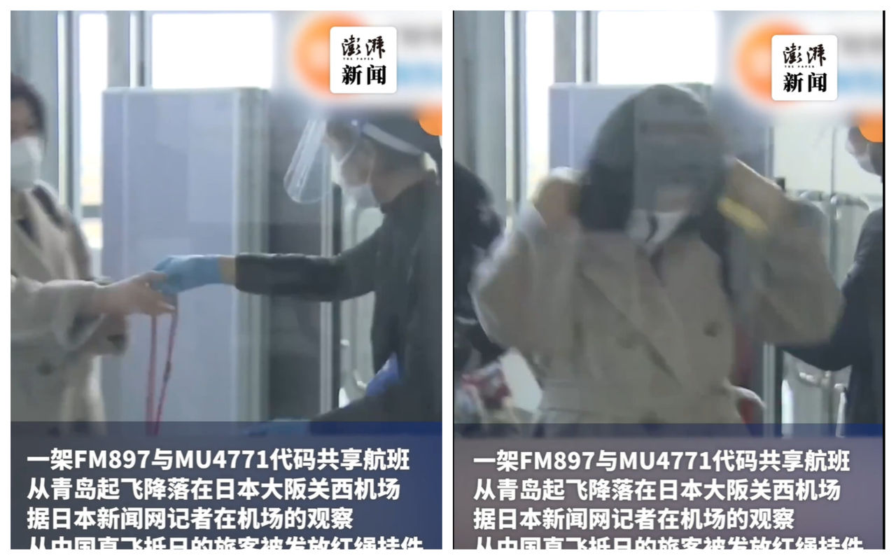 《澎湃新聞》11日引述日媒報導,從中國飛抵的旅客被發放紅繩掛牌,與其他乘客區分,包括乘坐在娃娃車上的嬰兒也被要求掛上。