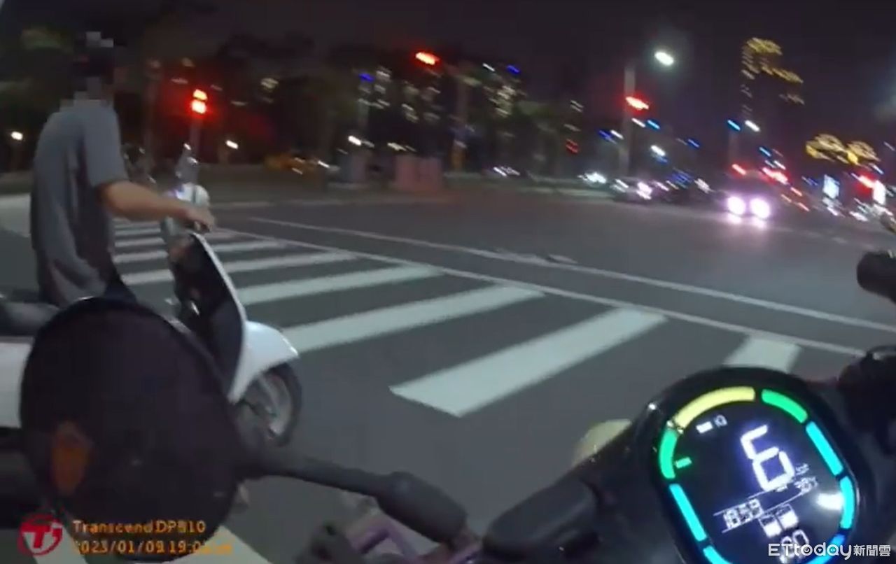 ▲男想闖紅燈見警突停…刺耳急煞車聲引盤查。(圖/讀者提供)