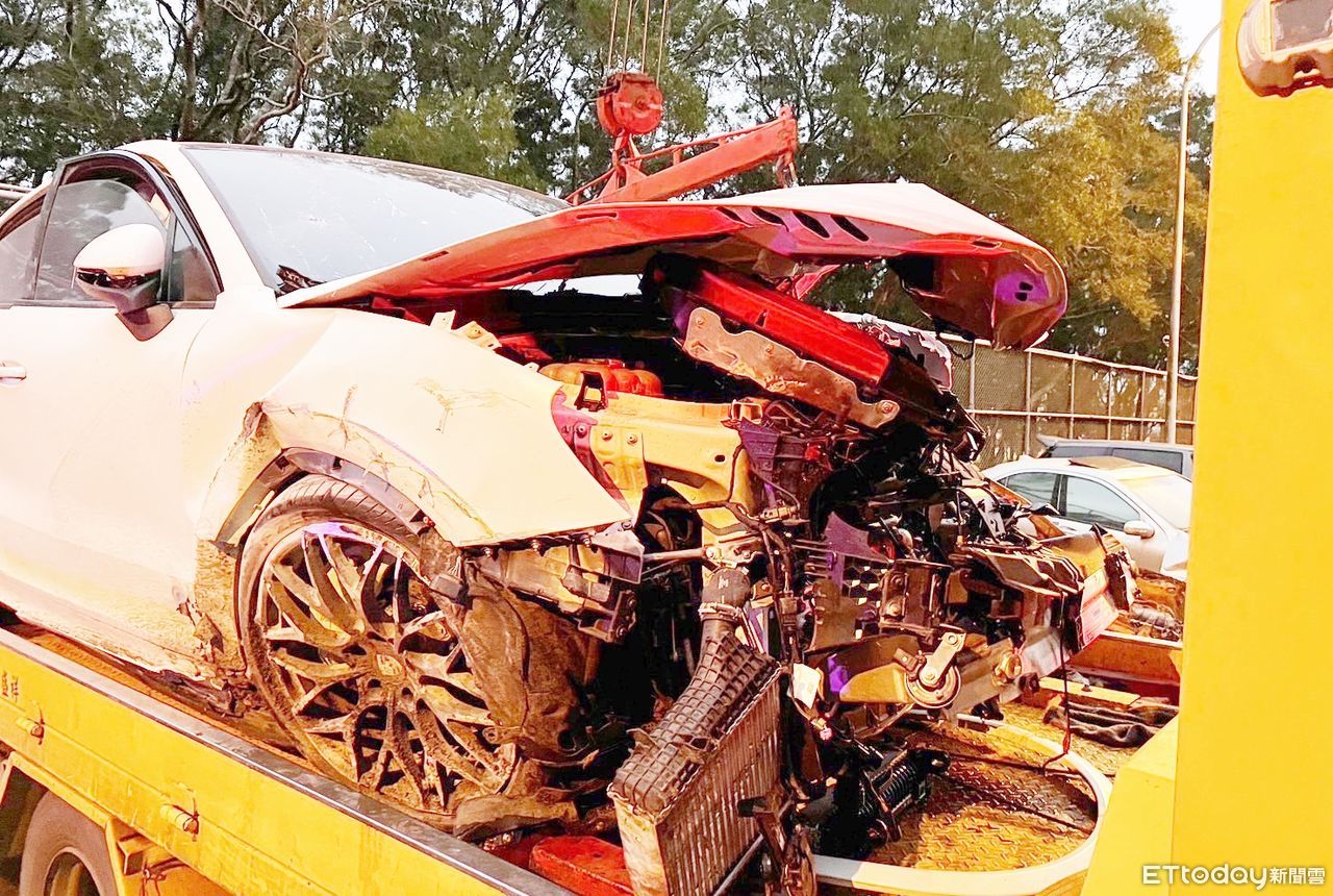 ▲駕駛保時捷休旅車林姓男子,昨天下午行經國三大溪路段時失控肇事,保時捷休旅車幾乎全毀。(圖/記者沈繼昌翻攝)