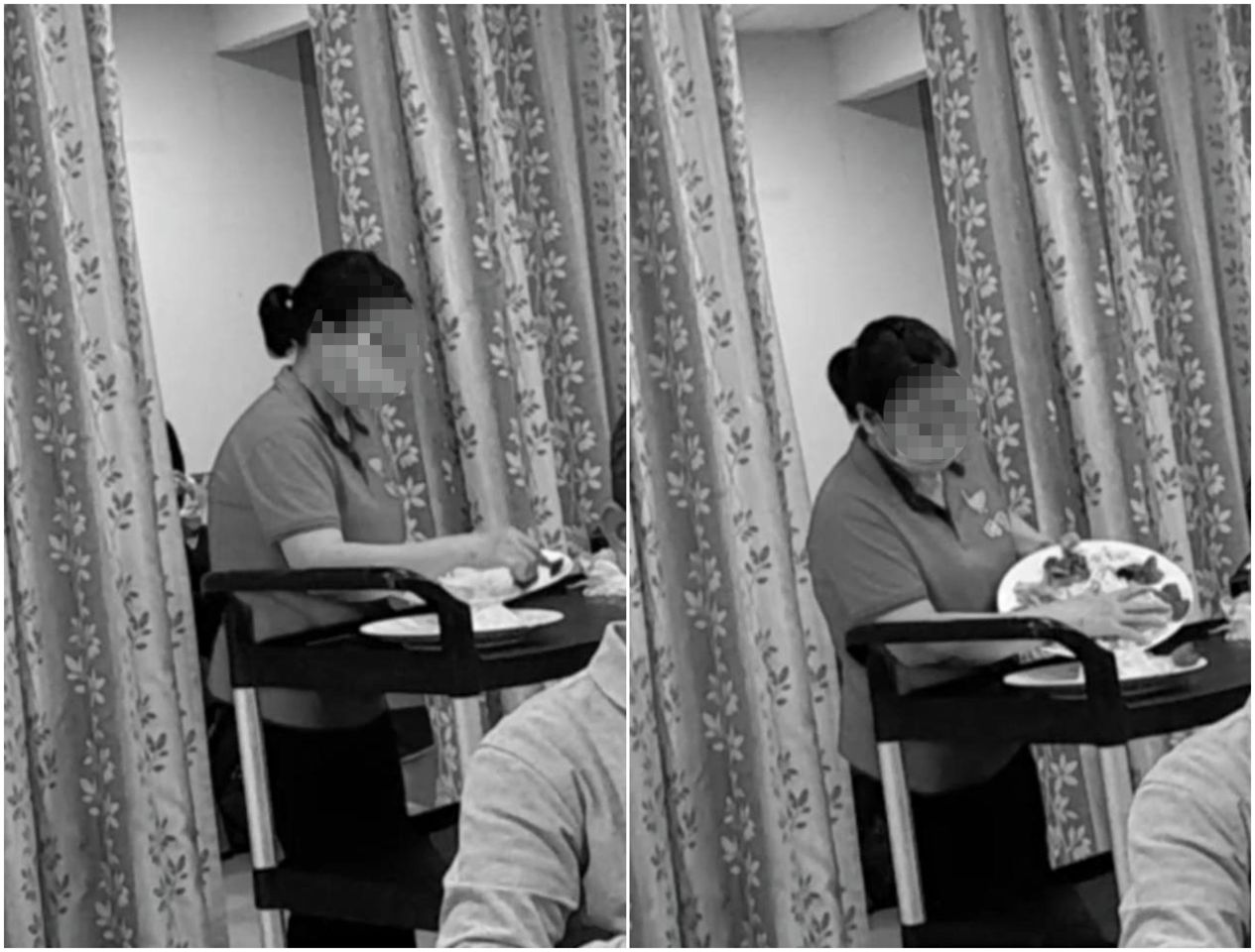 原PO在臉書「爆料公社」表示,日前到科博館附近的餐廳吃飯,期間發現一名女服務生在替隔壁包廂上菜,可是在送餐前,對方竟用手將菜餚裡的湯汁瀝掉,且全程都沒有戴手套,下秒就裝沒事將菜端進包廂裡面,之後另一盤菜也被同個方式對待,才送到客人面前。