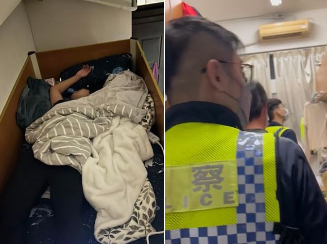 ▲警方抵達現場後也爬上床,費了一陣力氣才終於將該醉漢叫醒。(圖/翻攝爆料公社)