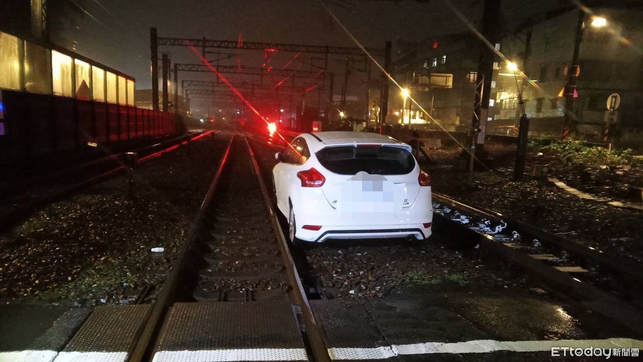 ▲25歲陳姓男子酒後載著29歲吳姓女友上路,結果直接將車開上鐵軌。(圖/記者郭世賢翻攝,下同)
