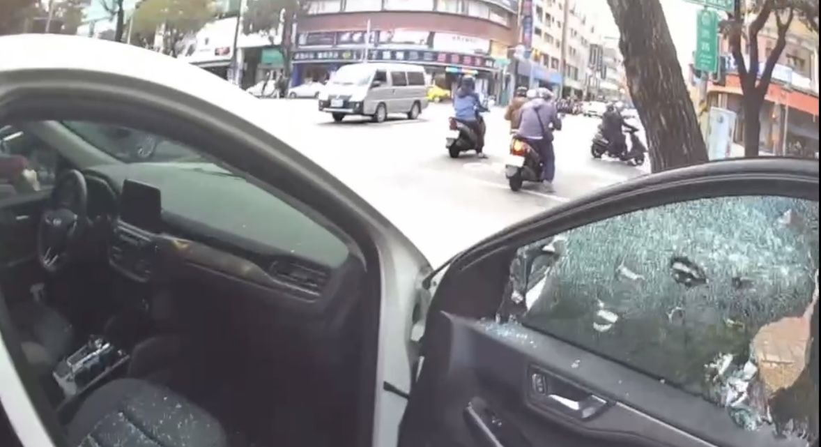 ▲9月嬰遭反鎖百萬休旅車內狂哭,母急奔派出所!警破窗救人畫面曝。(圖/記者賴文萱翻攝)