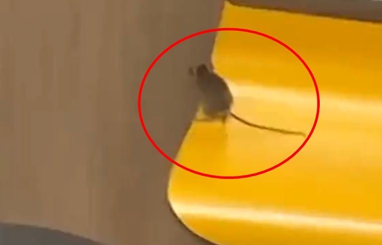 店員隨後拿起垃圾桶試圖追趕這隻老鼠,克勞依湯普森也把直擊老鼠在椅子、桌子上跑來跑去的樣子拍下來。但當老鼠朝她直衝而來時,她嚇得尖叫跑出店外,連食物都沒有吃完。