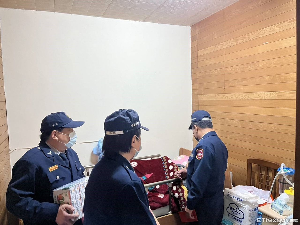 農曆年節將至,三重分局重陽派出所勤區警員廖淳逸會同轄內富福里長陳惟國及民防人員,攜手合作寒冬送暖,主動深入社區關懷轄內之弱勢家庭,援助貧困民眾渡過寒冬。三重70歲陳姓老翁,長年照顧失明妻子,這幾年身體欠佳,竟然也失明,並且要長期臥床,家中女兒從小患有小兒麻痺,行動不便,經濟重擔卻只能依靠女兒打雜工維生,富福里長當下除提供援助物資外,也通報相關社福單位註記關懷。