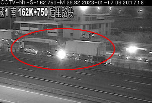 ▲現場畫面。(圖/翻攝高公局網站/下同)記者陳俊宏/綜合報導準備要上班的民眾注意!高公局表示,今天(17日)6時14分,國道1號北向162.7K、后里路段,2大貨車追撞佔外車道,請用路人小心行駛。