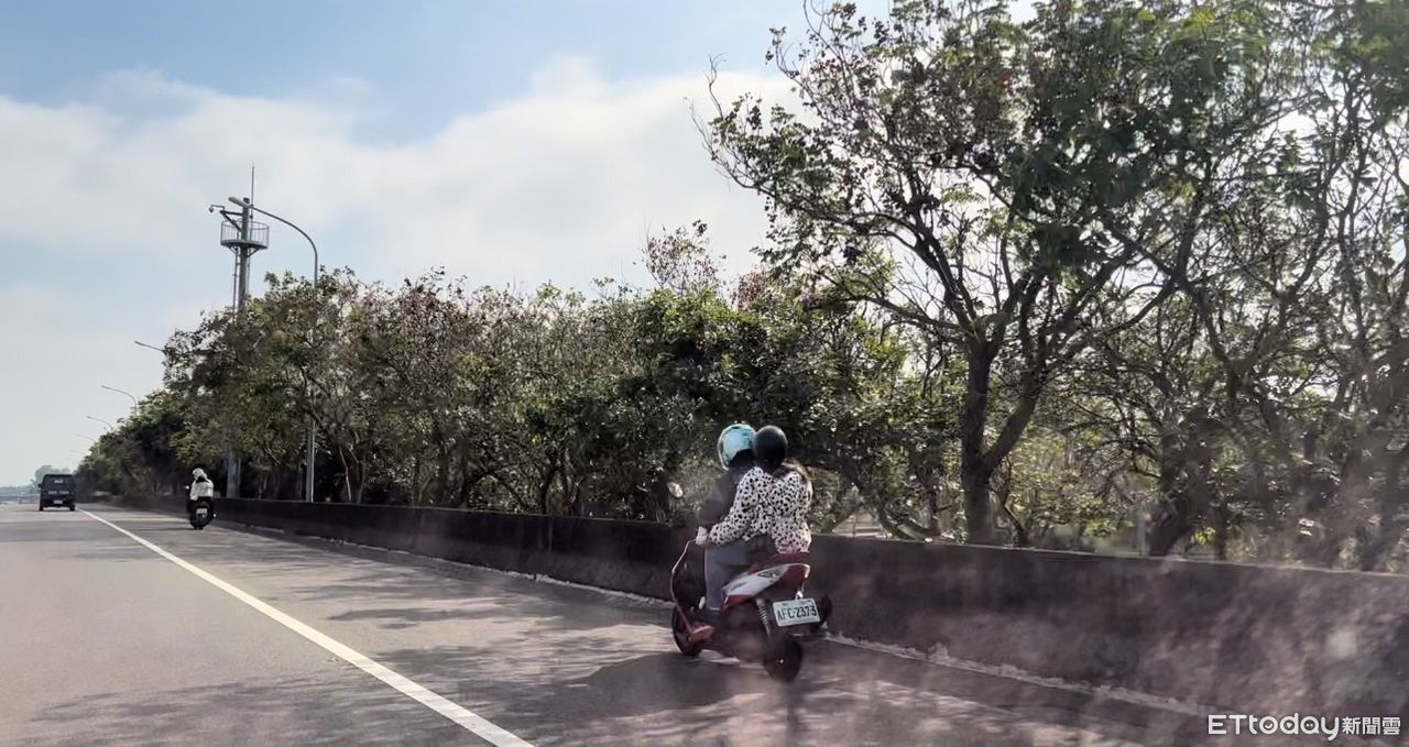嘉義縣台82東西向快速道路18日上午10時許,驚見兩部機車違規騎上快速道路,還連闖兩交流道,路過車主拍下兩車4人雙載,一路奔馳在快速道路路肩,但一旁呼嘯而過的大貨車及自小客車不斷,讓人看得冷汗直流。
