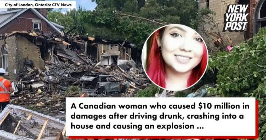 加拿大26歲女子雷斯(Daniella Leis)在安大略省倫敦市的百威啤酒花園體育館,參加瑪莉蓮曼森(Marilyn Manson)的演唱會,由於她喝到爛醉被趕出會場,沒想到她駕車回家途中竟衝撞一棟民宅,甚至撞壞天然氣管線,引發大爆炸,最後釀成4棟房屋被炸毀、7人受傷,損失估計高達4.4億元新台幣,沒想到她事後竟控告當初提供酒精的業者,認為對方必須為意外負責。