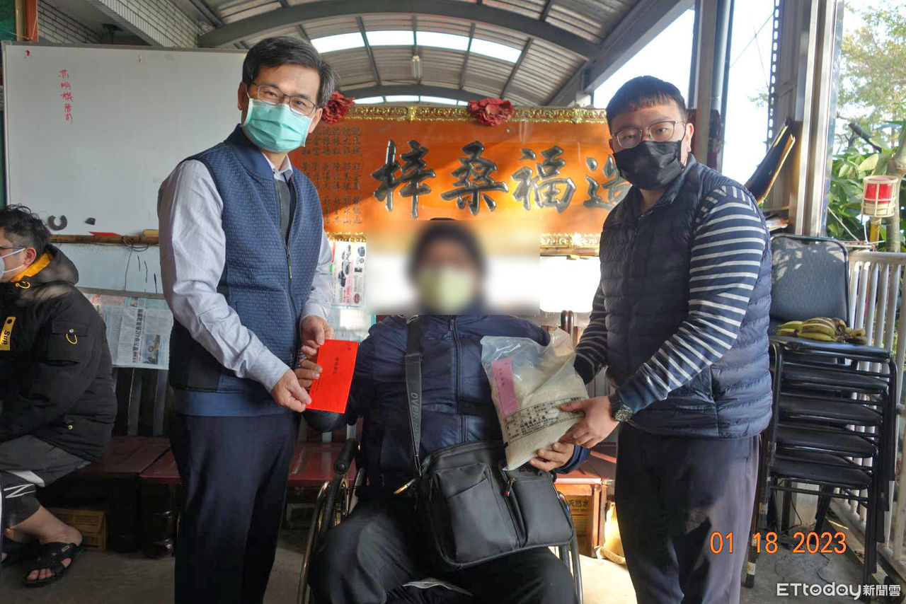 ▲雲林監獄於農曆年前,聯合當地里長投入關懷鄰里活動,發放低收入戶救濟金及物資。(圖/記者蔡佩旻翻攝)