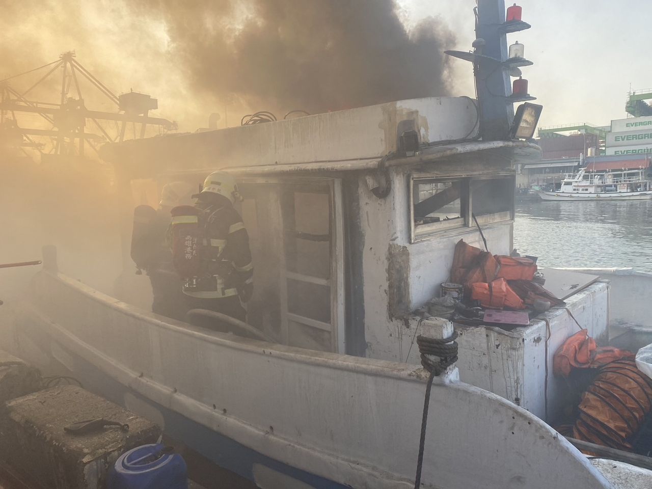 ▲高雄港漁船起火!黑煙狂竄延燒4船,消防出動20車41人灌救。(圖/記者賴文萱翻攝)