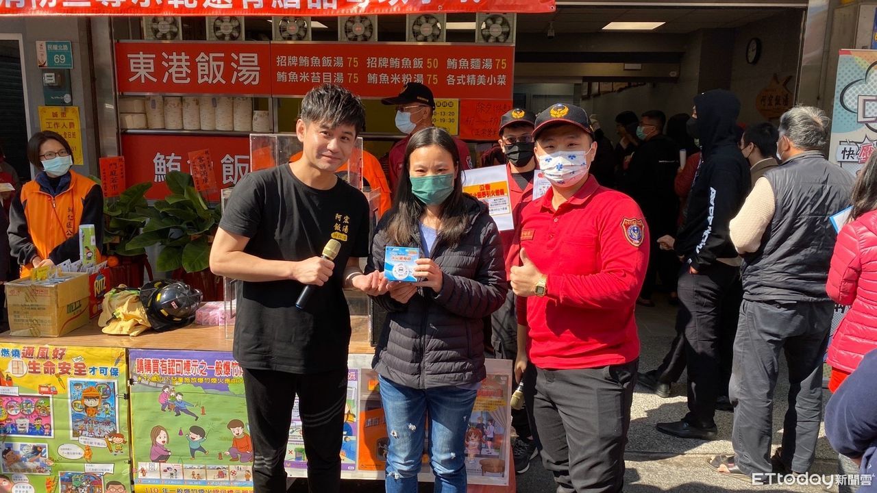 ▲台南市消防局第五大隊保西分隊,在歸仁區民權北路黃昏市場旁的阿宏飯湯,辦理119九擴大防火宣導。(圖/記者林悅翻攝,下同)