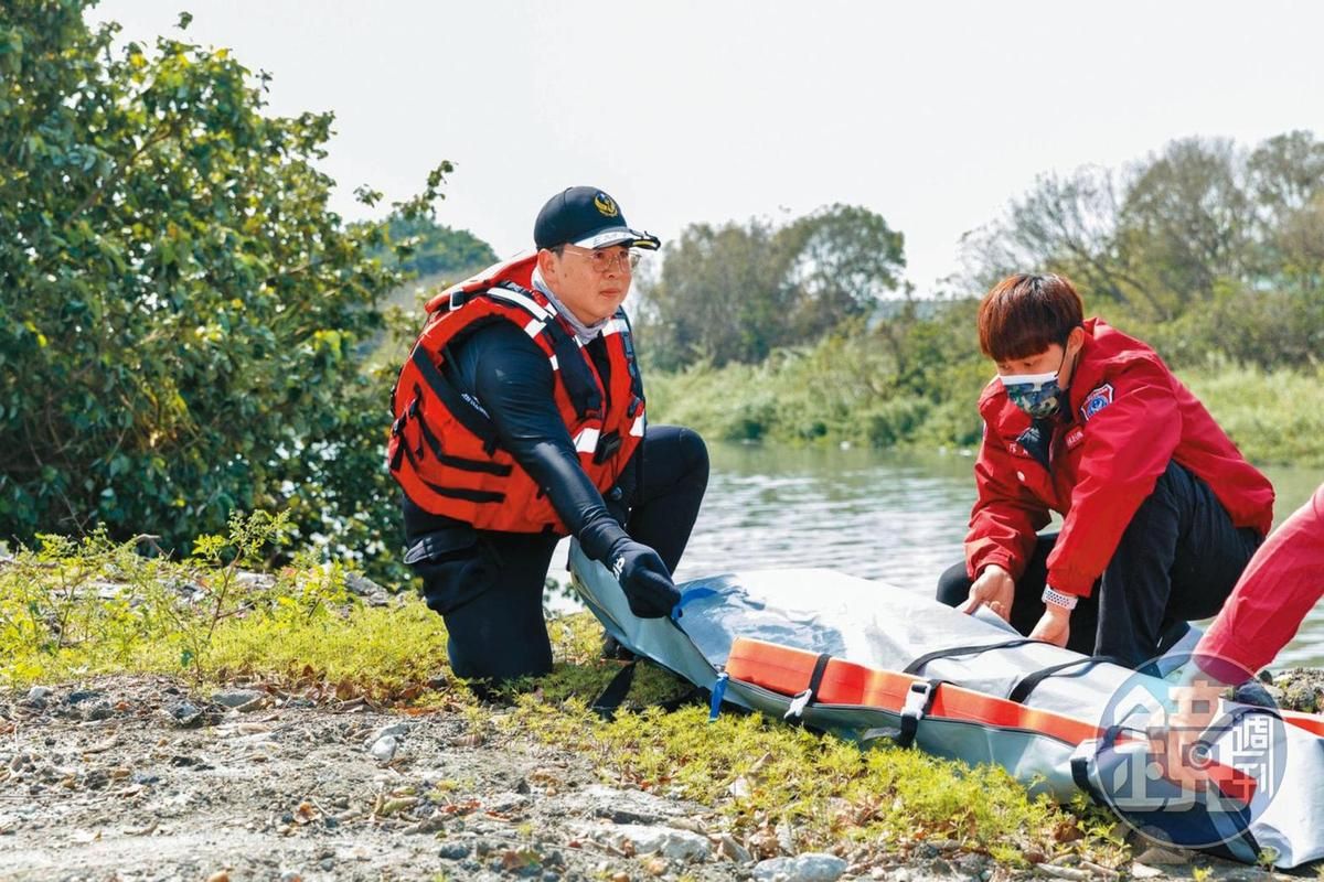 過去打撈浮屍沒有工具,消防隊員下水時,只能徒手,或抱或推地把屍體搬到板子上,再用繩子綁好拖上岸。資源充足一點的消防隊,屍體上岸後還能放入屍袋,資源不足的,就直接放路邊。「浮屍因死亡2、3天,腐化又泡水,所以皮膚有一層油脂。」消防隊員在水裡與浮屍親密接觸,看著浮屍的皮膚脫落飄走,或是沾黏在自己手上,同時也直面浮屍的臉。「超過3、4天的很恐怖,光看就有心理壓力。」至於氣味,死亡1星期內,是霉味與死老鼠味,「超過1個月以上的,就像有人從餿水桶抓一把往你鼻子上抹的感覺。」出完任務就算沒吐,大概也什麼都吃不下了。
