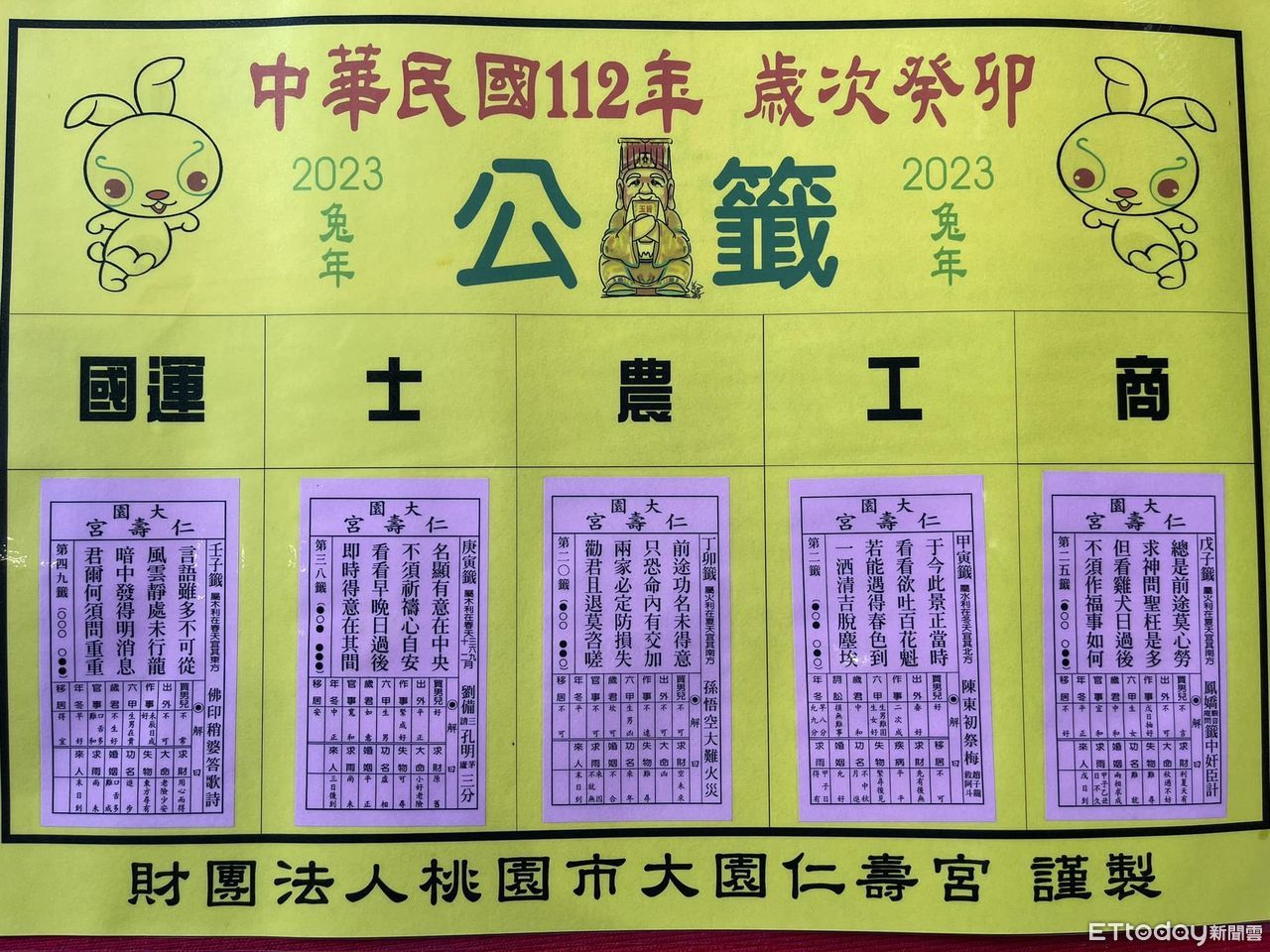 ▲桃園大園仁壽宮除夕夜抽出「國運籤」及「士、農、工、商籤」四大籤。(圖/翻攝自Facebook/財團法人大園仁壽宮)