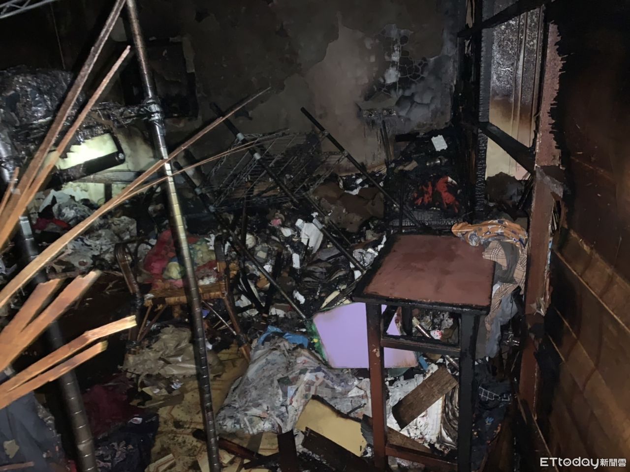 ▲臥室被燒毀。(圖/記者蔡文淵翻攝)