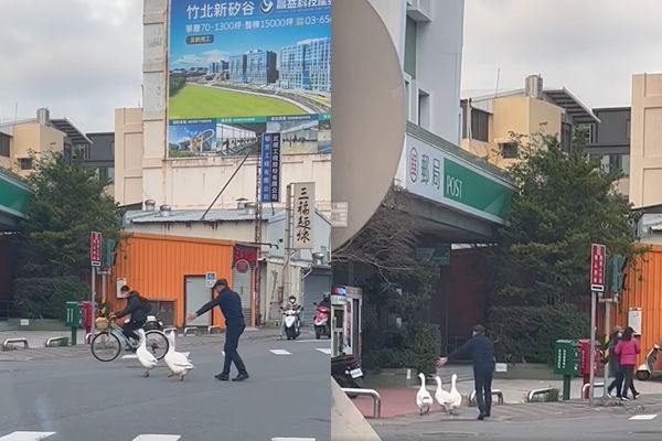 而在此之前,就有民眾在新竹城隍廟附近捕捉到這3個呆萌的身影,當時3隻鵝的前方還有主人帶路,如今卻站在大馬路中央探頭探腦,讓人不禁感到好奇,是不是跟主人失散了。